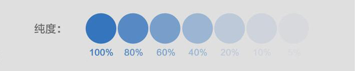 不同色相的纯色不仅明度不同,纯度也各不相同。这是由于眼睛对不同波长的光辐射的敏感度不同造成的。其中红色纯度最高,橙色、黄色纯度较高,蓝色、绿色纯度最低。纯色代表着这种颜各种色彩从高纯度到完全纯灰色逐渐过渡的纯度列。