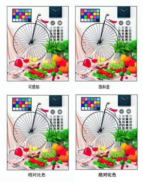原色彩空间呈现的色彩,并不可能在目标色彩空间全部被复制,不能被复制的叫色域外色彩。对于这部分不能够复制再现的色域外色彩,可以设定4种处理的不同方法,也就是所谓的再现意图。